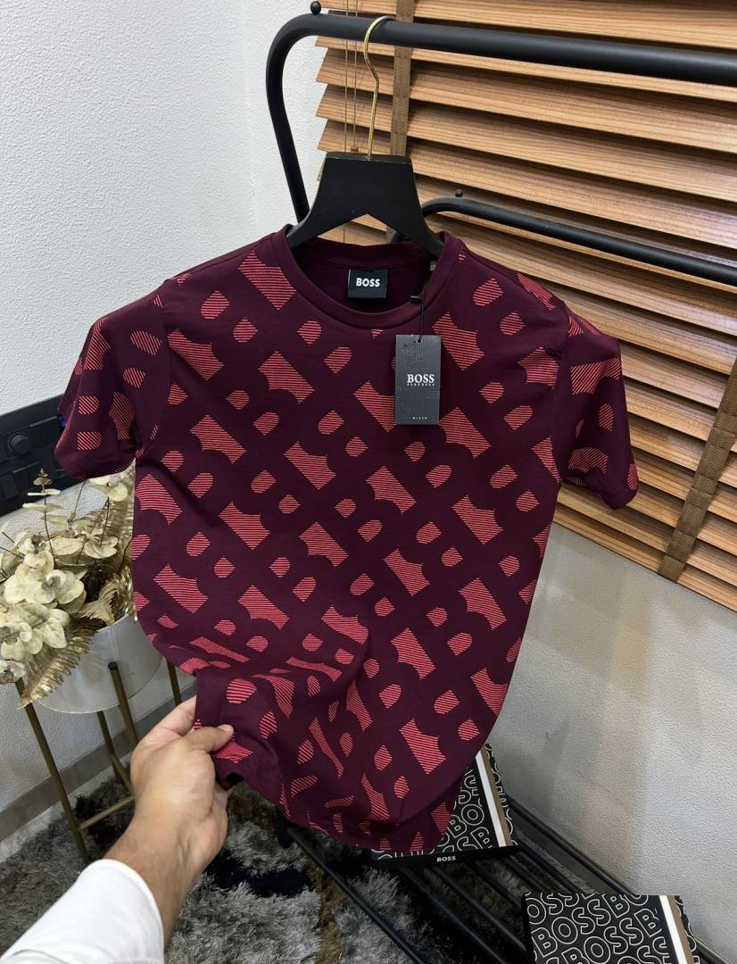 Bos_s Cotton Elastane Printed Premium Crew Neck T-shirt With Brand Box