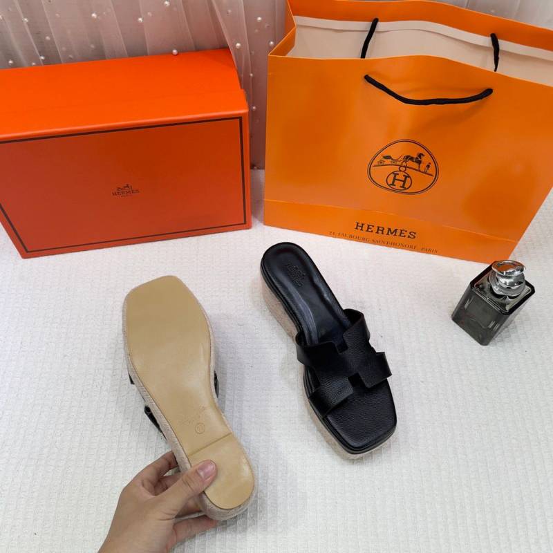 • Hermes Paris Oran High End Premium Flats With OG Box & Carry Bag (Black - 1121)