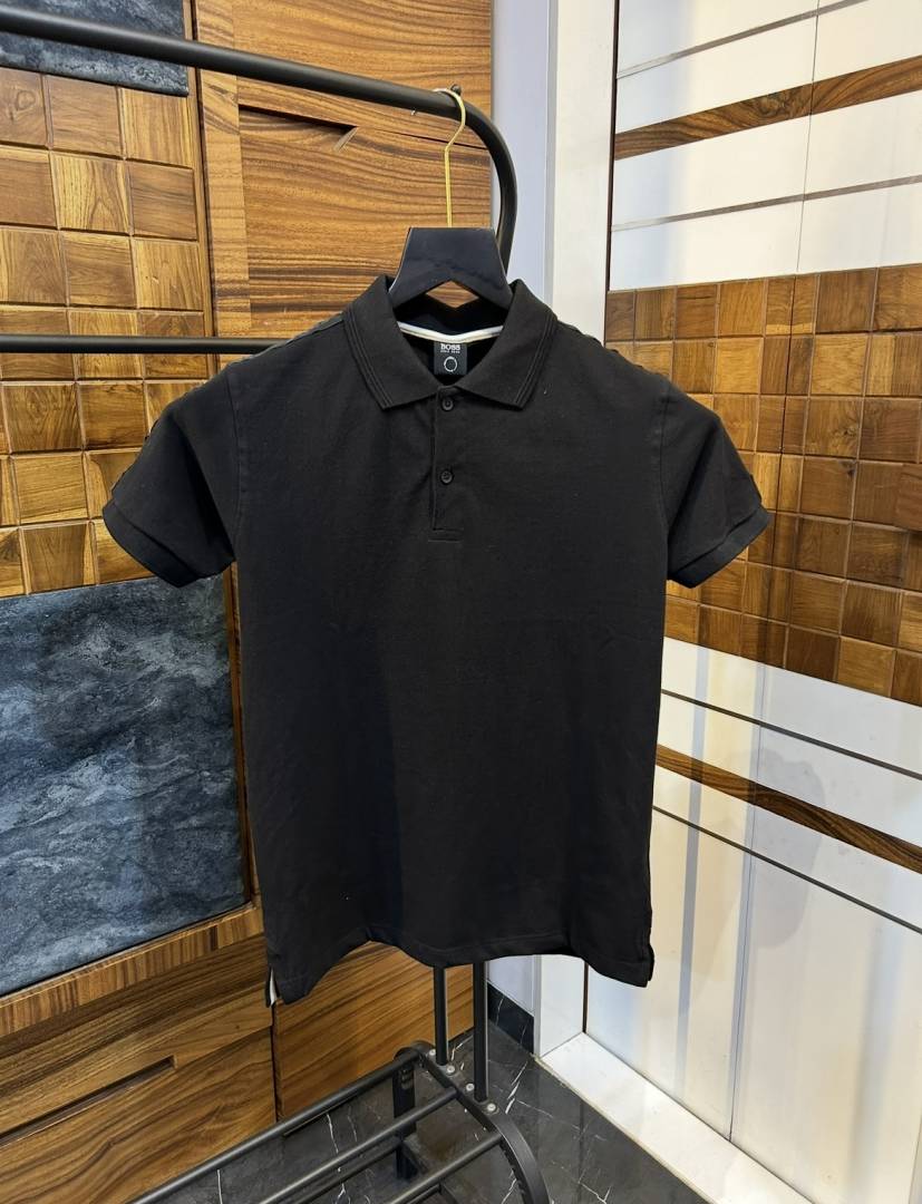 Hugo_Boss Black Embossed Logo Print Premium Collar Neck Polo T-shirt F1691-BL